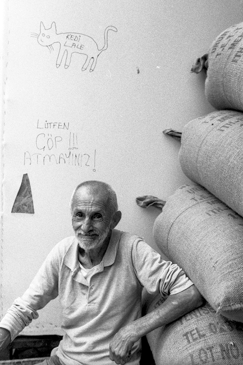 Birinci fotoğraf Kemeraltı’nın en eski kahvecisinin önüdür. Bu kareyi benim için ilginç kılan arkadaki kedi çizimidir. Sanki taş devri mağara resmidir. Bu amcanın bende dört yıl önce bir yaz günü çektiğim kafasında gazeteden yaptığı Napolyon şapkalı bir fotoğrafı daha var. Bu fotoğraf ABD de bir arkadaşımın ofisinde hayat buldu.