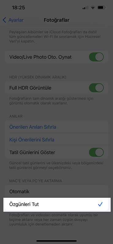 Yukarıdaki yöntemle birlikte, videoları AirDrop aracılığıyla orijinal çözünürlüklerinde göndermek istiyorsanız yapmanız gereken başka bir ayar daha vardır.