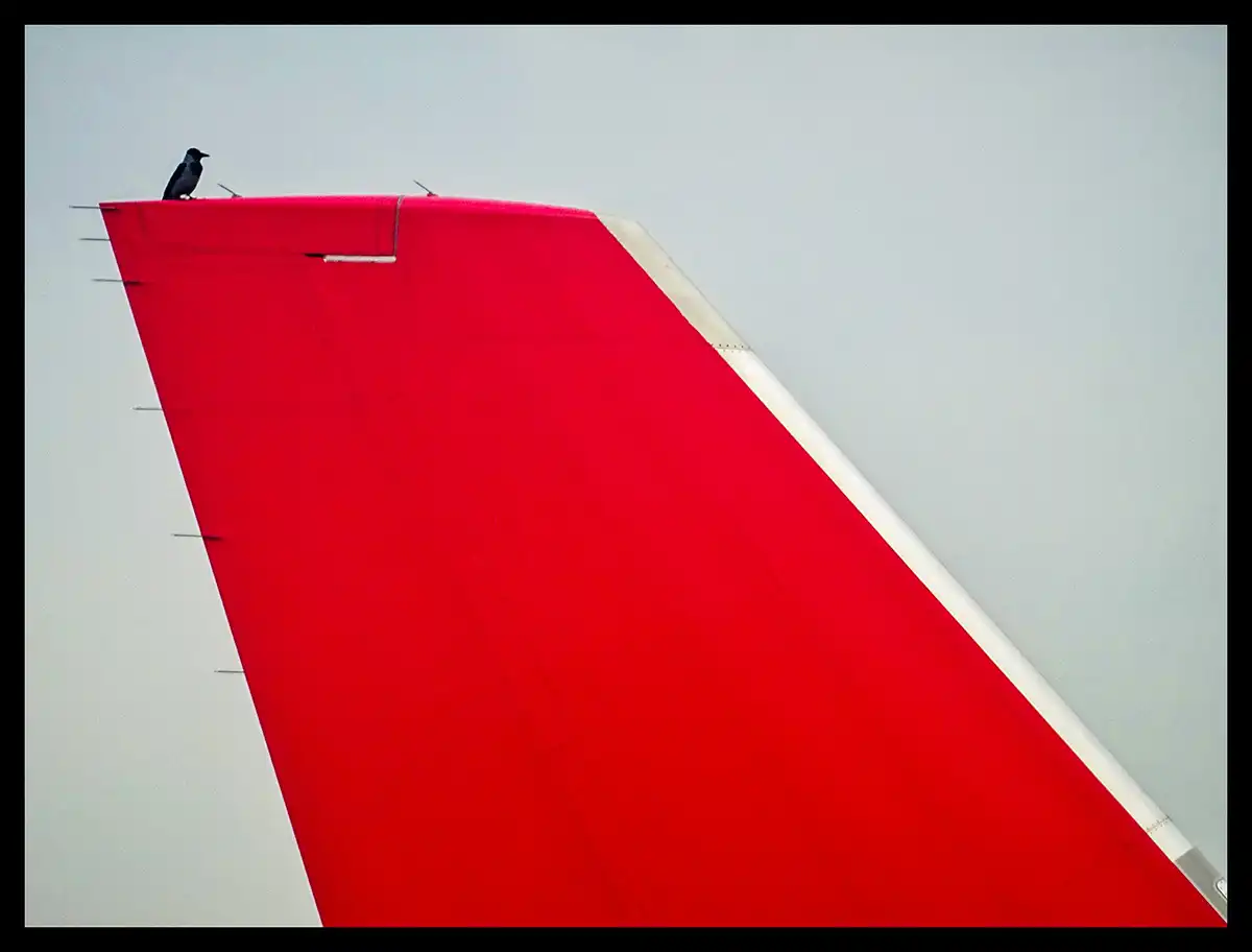 Uçağı kuyruğundan tutup uçuruverecek gibi duran kanata konmuş bu sevimli yaratık uçağın kapılarının kapanmasını mı bekliyor? Neden olmasın? Bana doğanın gücünün teknolojiye karşı duruşunu düşündürüyor. Biraz fantezi edebiyat (Fantasy literatüre) dalına girilirse güzel bir çocuk masalı yazmak da mümkün görünüyor.
