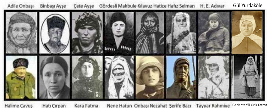 Not-2: Bir başka internet sitesinde ise milli mücadeleye katılmış (benim anladığım direkt cephede bulunmuş olanlar) kadınlarla ilgili yazı var. Ancak biliyoruz ki cephe gerisinde kadınlarımızın milli mücadele için inanılmaz bir gayretle çalıştıkları, mermi imalatından iaşe teminine kadar görev almışlardır. Burada bahsi geçen kadınlarımız bence hepsini temsil etmektedir.