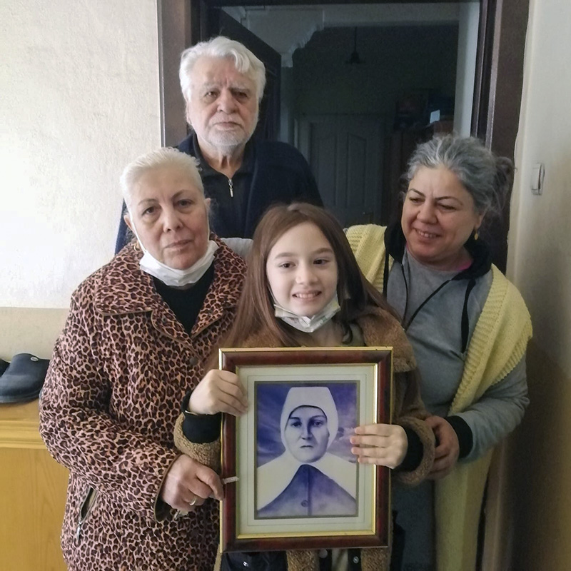 Annesi Müzeyyen Hanım pazarda olduğundan babası evdeydi kapıda bir süre onlarla sohbet ettik. İçeriye girip bize daha önce hiç görmediğimiz vesikalık bir fotoğraf gösterdiler. İşte Namı değer beyaz Maskeli Kadın karşımızdaydı. Bu çok kıymetli ve değerli bir andı bizim için.