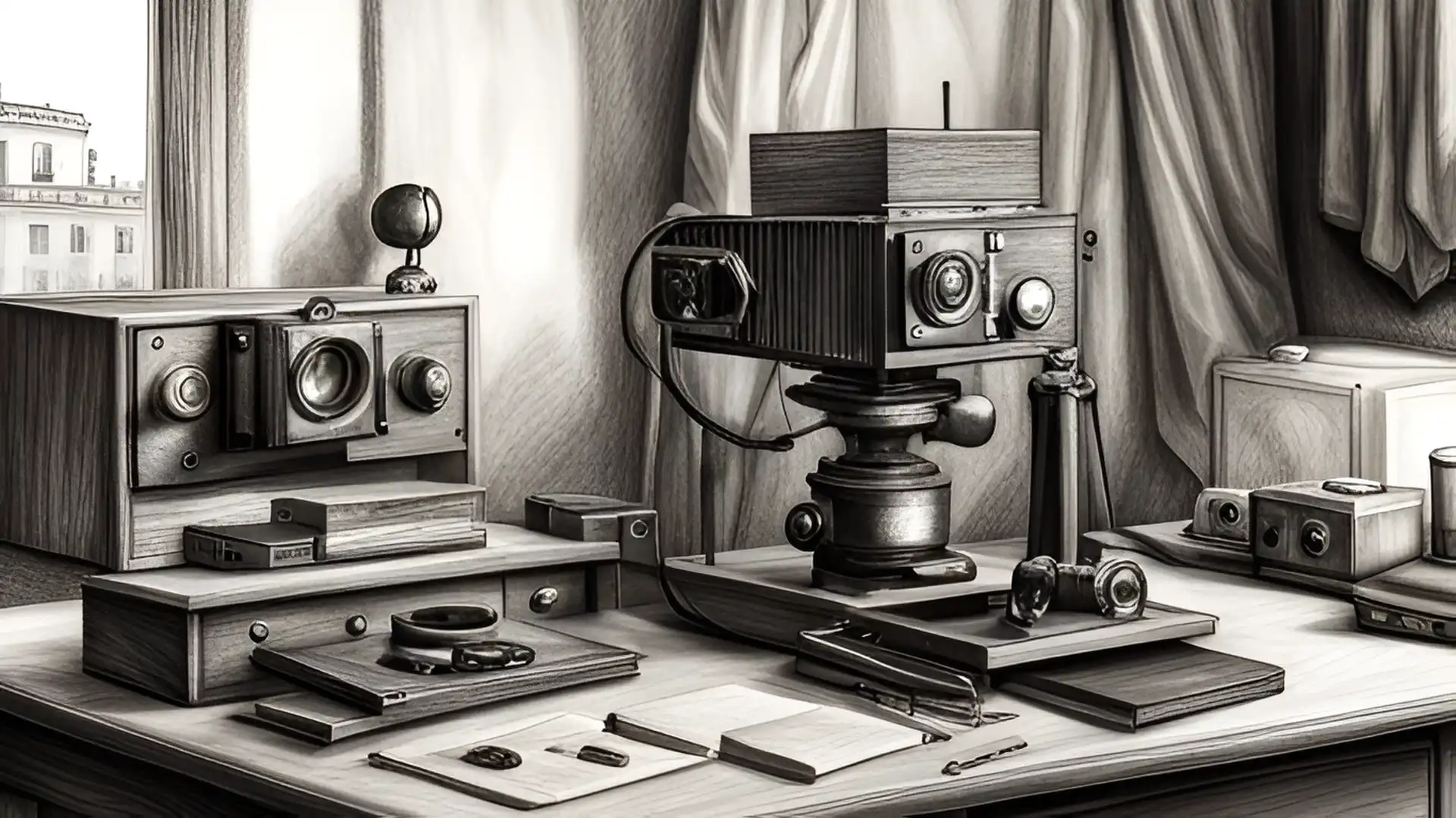Alman bilim adamı Gaspar Schott, kolunun altında taşıyabileceği ve bir paltonun altına gizlenebildiği kadar küçük bir camera obscura cihazı hakkında bir haber aldı ve başka bir ahşap kutu parçasının içine yerleştirilmiş bir tahta kutu parçasını kaydırarak odaklanabilen kendi kayan kutu kamerasını oluşturdu.