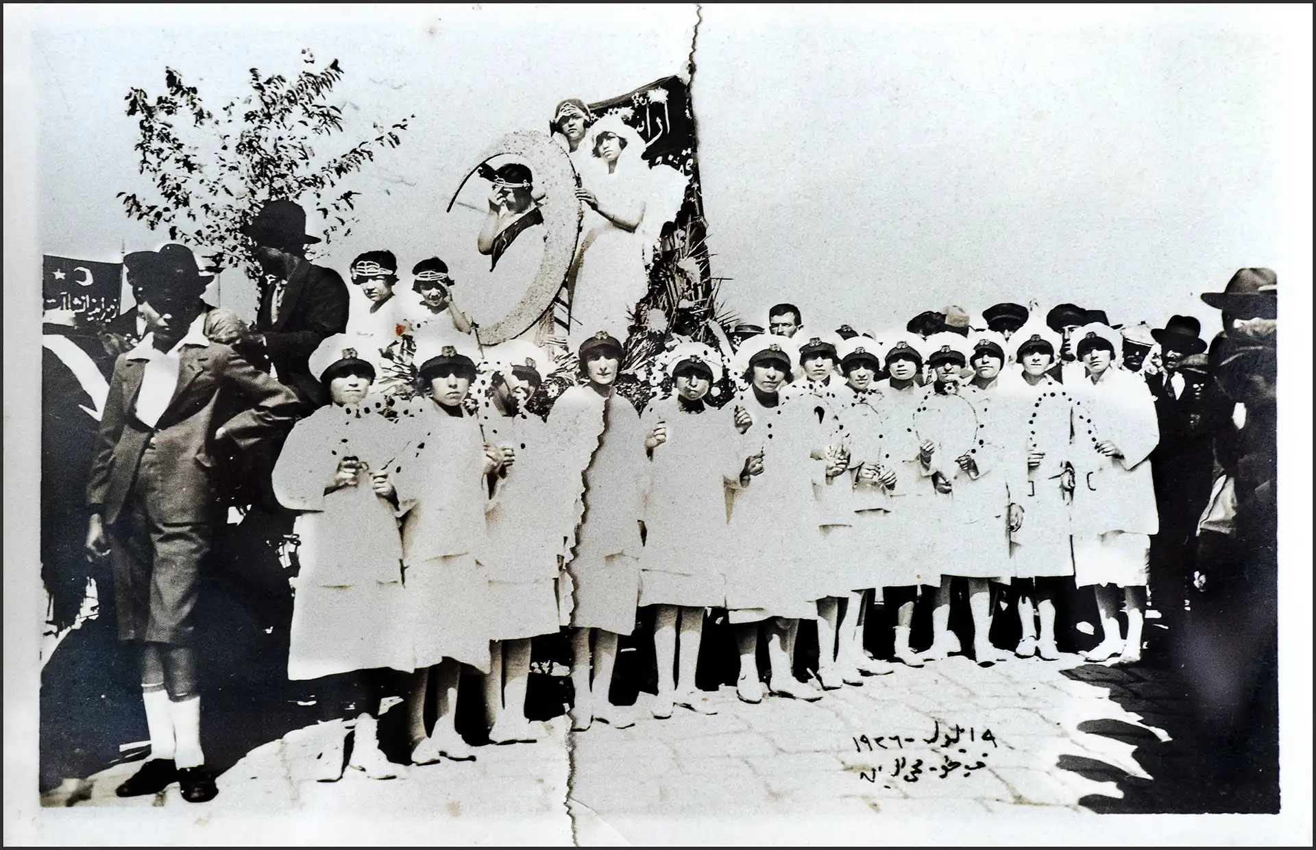 Yine, 1928 Harf Devrimi öncesi bir okul geçit törenindeki yerini almış.