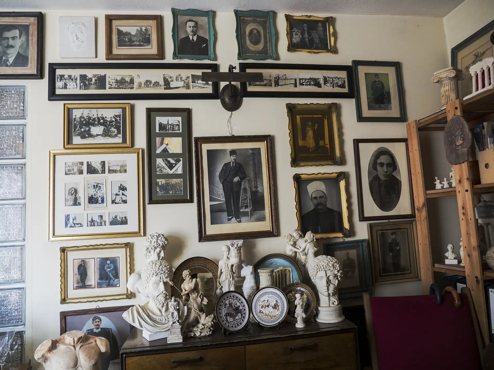 K. Beşikçi’nin duvarlarını birçok siyah beyaz fotoğraf süslüyor. Hepsi ayrı bir güzel ama bu yırtık fotoğraflar tarihe ışık tutuyor.