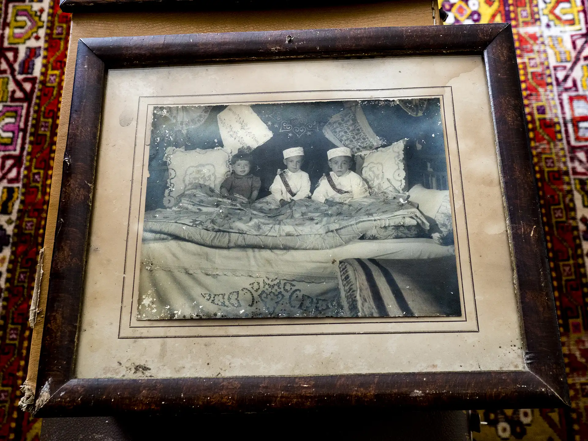 Bu ise ayrı bir hikâye anlatıyor. İki sünnet çocuğu yanına özendiği için kız mı, erkek mi olduğunu anlayamadığım başka bir çocuğu daha yatırmışlar. Bunun çerçevesini de asmak için direk olarak üzerinden çivilemişler. Yatak örtüleri hangi döneme ait olduğunu yansıtıyor. Nakış-kesme işi, atlas örtüler, işli yastıklar…