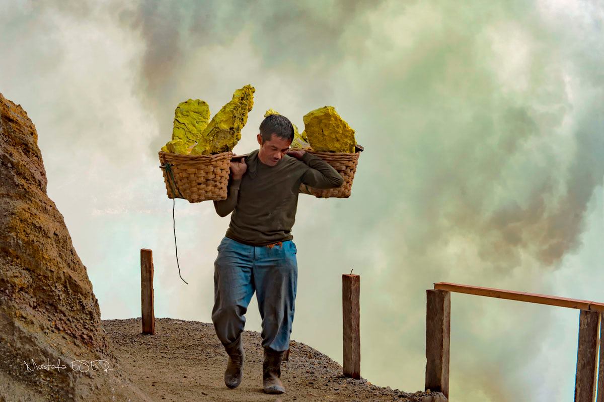 Mustafa Eser Beyefendinin Ijen Krateri/Endonezya’da çektiği bu fotoğrafı eleştirel duygular içinde takdir ettiğimi açıklamalıyım. Fotoğrafta görüldüğü gibi fondaki gaz bulutu kraterin canlı olduğunu, omuzda sepetlerle taşınan sarı kayacın biraz araştırmayla sülfür taşı olduğu anlaşılacaktır. Şimdi burada durmak lazım! Sülfür üreten canlı bir krater dünyanın en zehirli yeridir. Zehirli gazı kusan kraterin içine girip sülfür taşı çıkarmanın zorluğunu en iyi fotoğraf anlatabilirdi ve bir ustanın da anlatmış olduğuna tanığız.