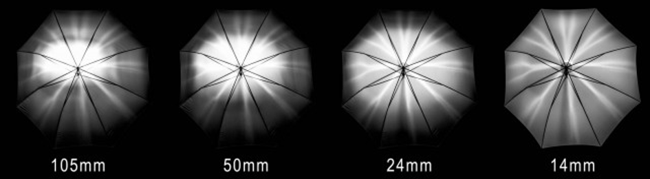 Değişik zoom değerlerinde flaşın çakma anının fotoğrafları bunu görsel olarak doğrular. Muhtemelen bu fotoğraflar çekilirken flaş-şekillendirici mesafesi sabit tutulmuştur.