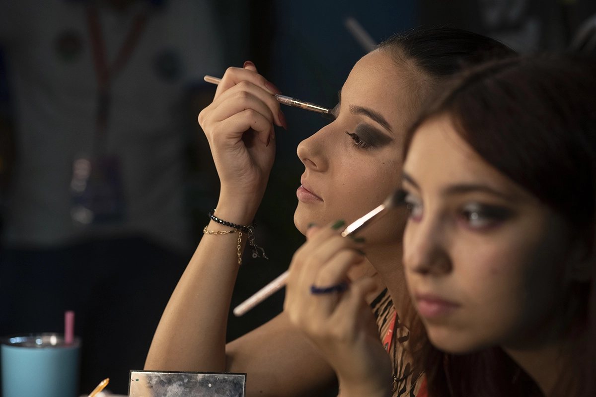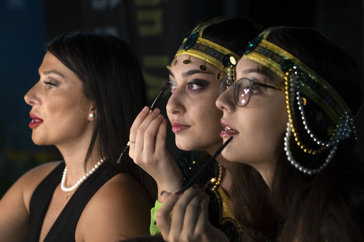 Etkinliğin olduğu meydana gelirken alışkanlıkla önce gölün kıyısına indim. Ve böylece etkinlik alanın sahne arkasına düştüğümü gördüğümde tam hayıflanmaya başlarken sahneye çıkmaya hazırlık için makyajlarını tazeleyen halk oyunları ekibini fark ettim. Açık alanda bir makyaj masası önünde yöresel kıyafetleri ile makyaj tazeleyen kız oyuncular…
