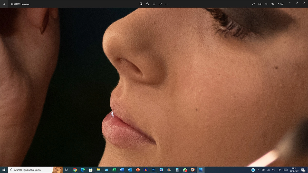 Işığın az buçuk yeterli olduğu ortamlarda ISO değerini yükseltmek grene çok etki etmemektedir. Bunu makyaj masasında çektiğim fotoğraflarda görebilirsiniz. Yüze gelen ışık miktarı her ne kadar gün ışığı kadar olmasa da “ISO 1000” değerinde hemen hemen hiç gren “noise” vermemektedir.