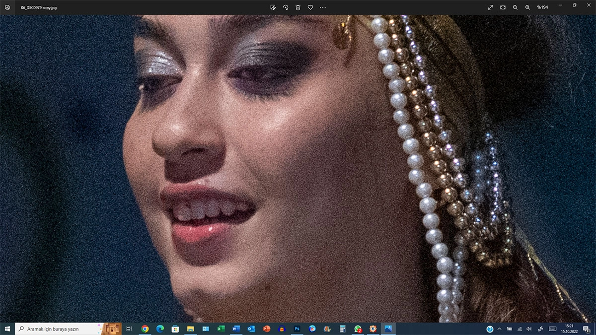 Bu değerlerde gren (hadi dijital ağzıyla söyleyeyim ‘noise’ ve keskinlik ne durumda? Büyütüp birlikte bakalım: