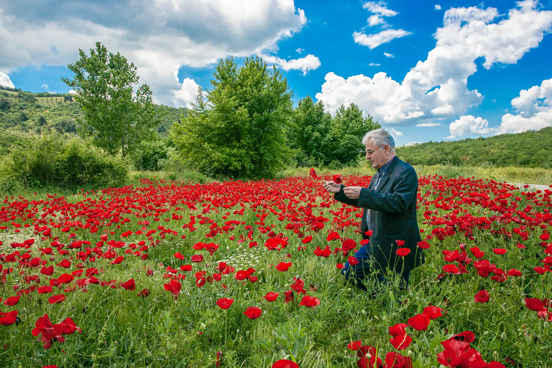 Havanın yumuşaklığına inat, sert bir ifade kapladı yüzünü. Sonrasında derin bir iç çekti, “Haklısın, biz değerlerimizi kaybettik” dedi. Aracı sağa çekti, geçişi engellemeyecek şekilde, yol kenarına park etti. “Kameranı çıkarır mısın” dedi ve gelinciklerle dolu küçük bir tarlaya doğru gitti. Gelinciklerin içine daldı, anlamıştım isteğini, birkaç kare görüntüsünü aldım.