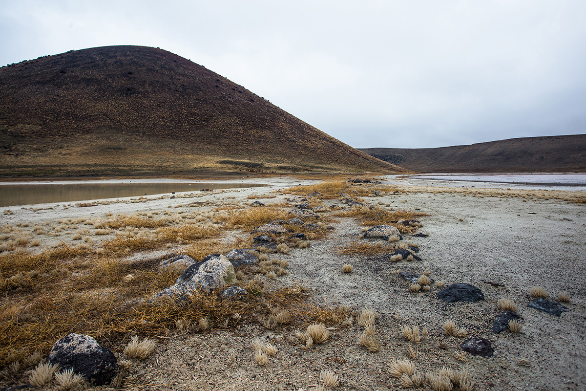 Bu yol tepeye doğru yükselir ve seyir yerine varırsınız. Dairesel biçimde göl, ova sulamak için hunharca çekildiği için azalmış kahverengi suları ve bu dairenin ortasında yer alan koni biçiminde tepe ile farklı bir gezegendir burası. Gölün etrafı kıraçtır. Kurumanın etkisiyle bazı kısımları balçıkla kaplanmıştır. Kahverengi bir topraktır, rüzgâr havalandırır estiğinde… Meke Havzası jeolojik bir yapı olan “maar” gölüne (volkanik arazilerde görülen patlama ile magmanın oluşturduğu geniş, hafif kabarmış bir kraterdir. Bunların çoğunluğu dairesel göller şeklinde bulunurlar. Kuru olanları da vardır. Türkiye’de Nevşehir ve Karapınar çevresinde yer alan Acı göl, Tuzla gölü) sahiptir. Aynı zamanda bir krater gölü de olan Meke gölü, adını bu bölgede yaşayan Meke kuşundan almaktadır.