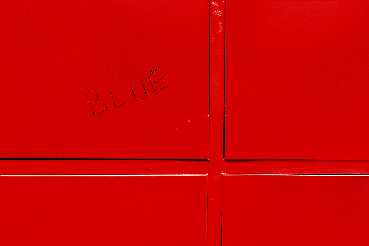 Fotoğraf, aslında ortaya çıkan sahnenin kendisiyle tam bir minimalizm örneği. Bana da sadece çekmek kalıyor. Yani yazan minimal bir sahne oluşturmuş. Kırmızı zeminde bir “blue” yazısı. Tek renk. İkinci renk yazıyla. Ancak kalemin rengi de “blue”. Kırmızı renk ve yazı fotoğrafta sevdiğimiz zıtlık “kontrast” göstermesine rağmen “kırmızı” ve “blue” renk olarak da zihnimizde birbirini tamamlıyor. Yani sahnede zıtlık ve tamamlayıcılık aynı anda yer alıyor. Bu sahneyi altın orana oturtmak kolay oldu. Eğer yazı kırmızı duvar kaplamasının ek yerleri olan çizgilerden uzak olsaydı bu olamayacaktı. Ya da çok iyi olmayacaktı.