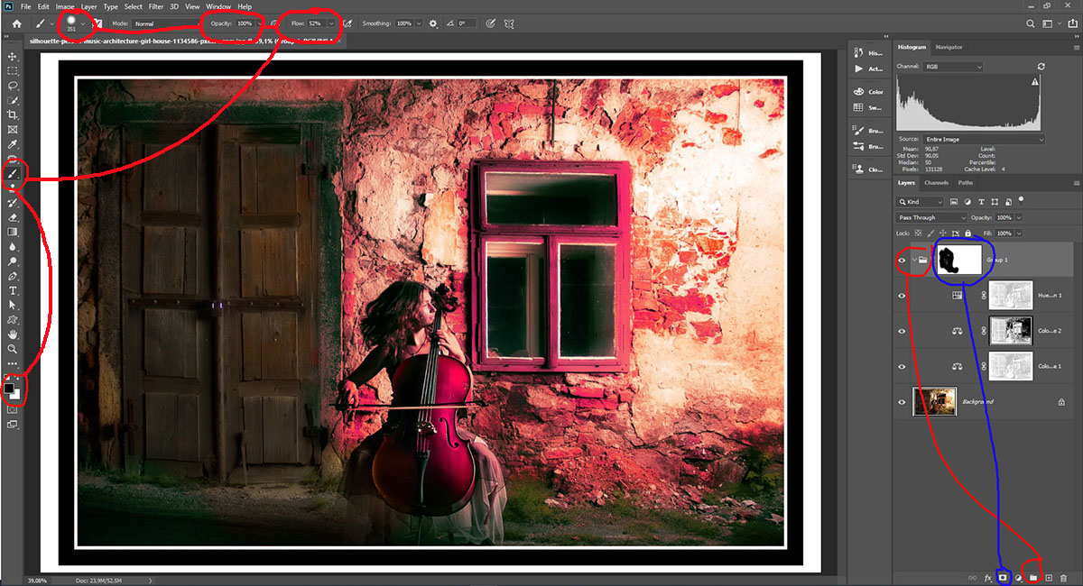 Klasik müzik sevdiğimi söylemiştim. Bu seferki uygulamada bir çellist fotoğrafı kullanacağız. Fotoğrafı buradan indirebilirsiniz. Rembrandt ışığı (Barok dönemde Caravaggio’yu anmamak olmaz) tarzı ile ışık ile çekilmiş iyi bir fotoğraf.