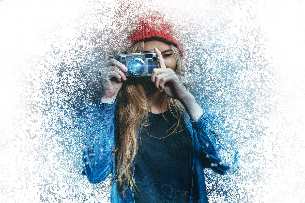 Böyle bir sahnede fotoğraf makinasının objektifinden de bir miktar buz yansıması olmalı. Bunu da eklemek için şu fotoğrafı kullanalım. Yine “Invert Mask” yöntemi ile sadece objektifte etkin olmasını sağlayalım ve “Overlay” yapalım. Böylece objektif de ortama uygun hale gelecektir. Bunu yaptıktan sonra “Invert Mask” üzerinde sadece merceğe denk gelen alanları uygun “Brush” ile boyamamız gerekecektir.