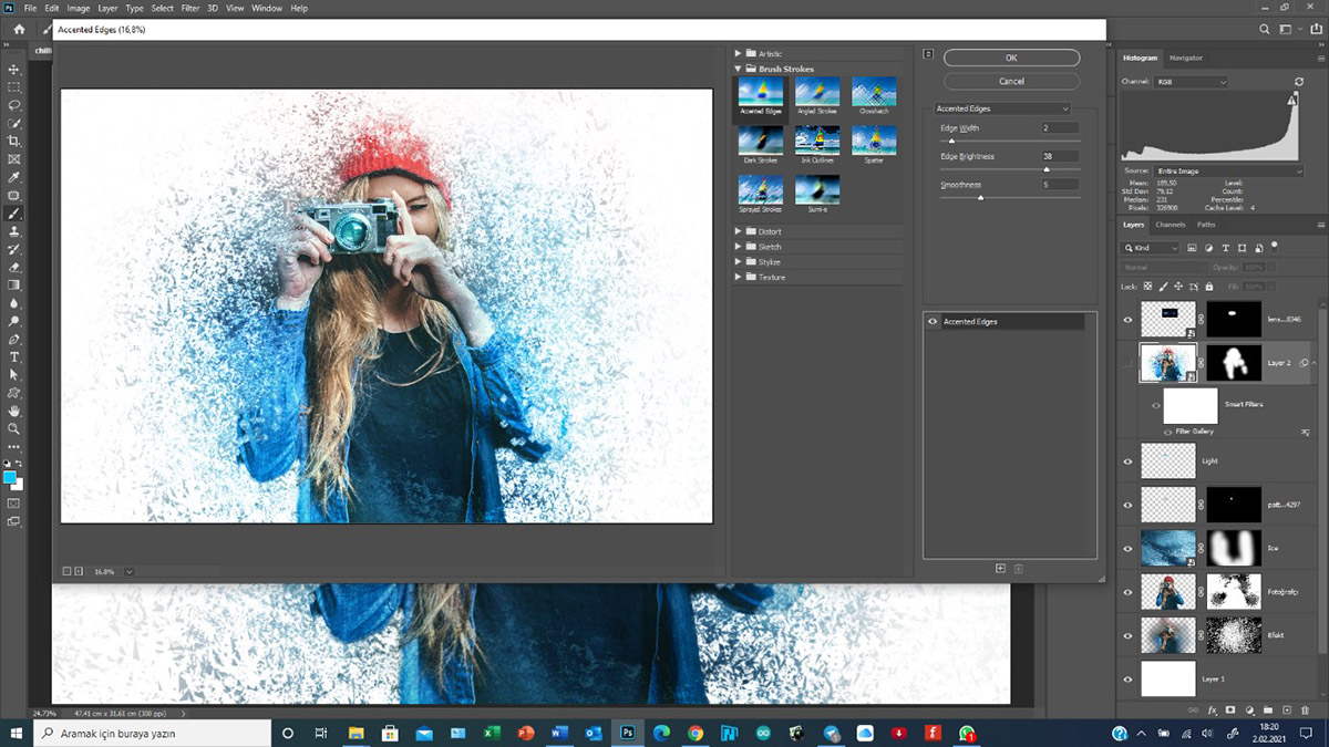 Bu işlemi “Smart Object” olarak yaparsak ileride bu filtre üzerinde yapacağımız değişikliklerin daha sonraki aşamalarda etkili olmasını sağlarız.