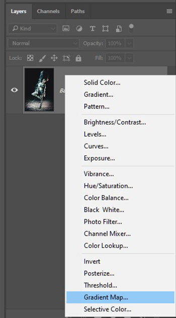 2. “Adjustment Layer” dan “Gradient Map” seçilir.