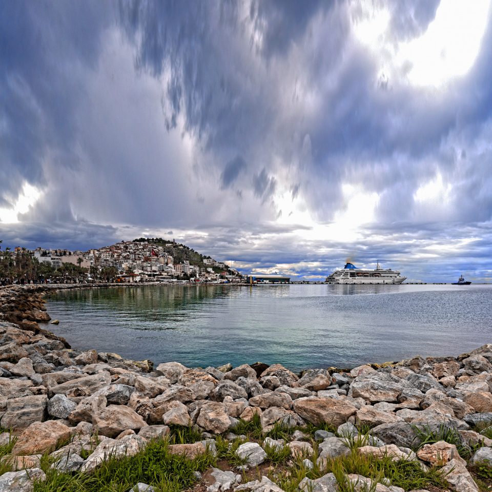 Sıkça yaptığımız gibi yine bir hafta sonu eşimle birlikte Kuşadası’ndayız ve sahilinde nefes kesici bir manzaraya bakıyorum. Her zaman yanımda olan kameramı çıkarıp bu harika görüntünün fotoğrafını çekiyorum: