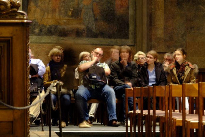 Exif bilgisinde hata yok, o fotoğrafı 1.7sn enstantane ile çektim. Arkada park halindeki bir bisikletin selesinden destek alarak çekmiştim. Aslında akşam hava kararmaya yüz tutmuşken çekildi. Zaten yine de titretmişim, fotoğraf çok net değil. Sağdaki bayan daha çok kıpırdamış yerinden, erkek biraz daha sabit durmuş. Ayakta dua ediyorlardı.