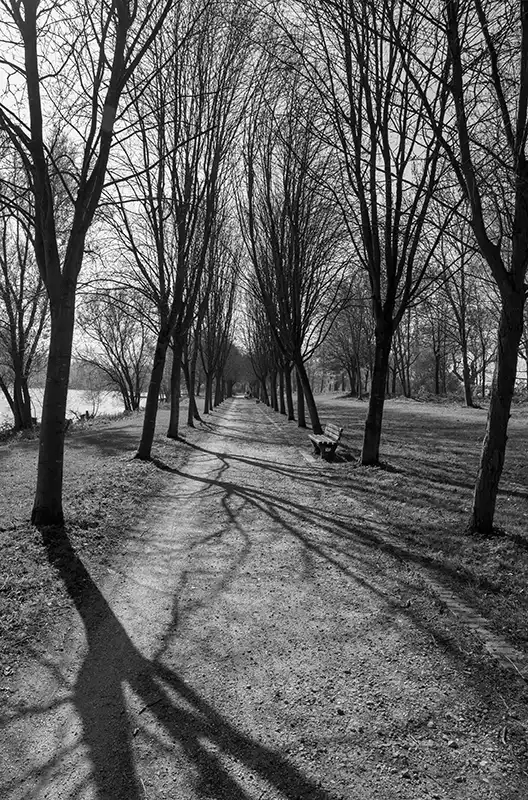 Yandaki fotoğrafı çekerken güneş yine tepede ve hava çok açıktı. Ancak her iki tarafı da ağaçlarla kaplı yoldaki gölgeler bana varsayılan diyafram olarak ƒ/11 (- 1 durak) seçmemi söylüyordu.