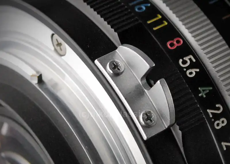 “Lensi indeksleme” denilen bu işlem, kameraya objektifin minimum ve maksimum diyafram değerlerini “bildiriyor”; en açık diyafram değeri, objektif yuvasının yan tarafındaki küçük kırmızı bir nokta ile gösteriliyor. (Doğru yere oturduğunu görmek oldukça hoş.)