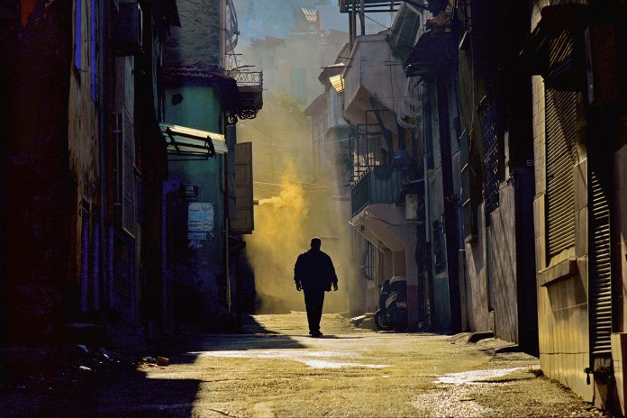 Yusuf Tuvi, bu noktada bununla ilgili Rönesans ressamlarından örnekler verdi. Ancak bu isimleri yanlış ifade etme çekincesiyle yazıya koymuyorum. Daha sonra “Sana bir örnek göstereyim” diyerek bilgisayarında Kemeraltı’nda çektiği bir fotoğrafı açtı. Kırmızı tişörtü olan seyyar satıcı bir çocuk ve sokağın diğer taraflarına çok ama çok az ışık düşüyor. Bütün ışık çocuğun üstünde. Bu fotoğraf üzerine konuştuk. Hatta Photoshop’ta biraz oynamalar yapıp hangisinin daha iyi olduğunu tartıştık.