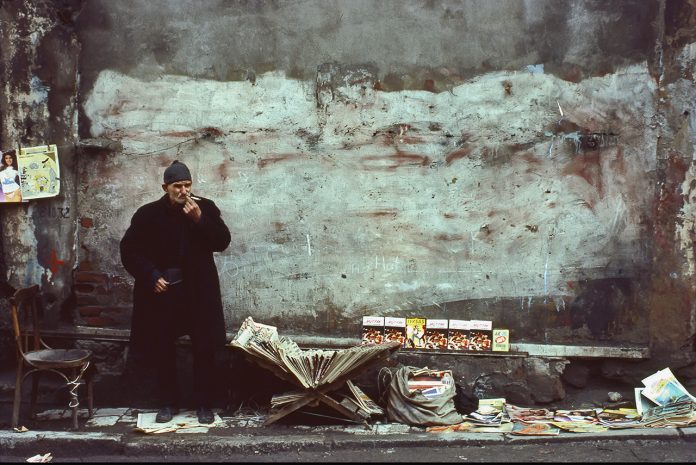 YT: Alex Webb… Salgado’da iyi. Proje adamı. Koudelka da var. Bir gün Ara Güler aradı ve “sana Koudelka’yı gönderiyorum gezdir” dedi. Vapurla gelecek. İskeleye gittim. Elimde adının yazılı olduğu bir karton. Vapurdan parkalı biri iniyor. Olsa olsa budur dedim ve kartonu sakladım ama gördü tabii ki. Benim kartonla fotoğrafımı çekti. Eve geldik. Yatağı gösterdim. Salonda uyku tulumu açtı ve orada yattı. Yanında kontakt baskılar var. Geceleri de bunlardan fotoğraf seçme çalışması yapıyordu. Basmane’yi Kadifekale’yi dolaştırdım. Küçücük bir makinası vardı. İnsanların fotoğrafının çekildiğini anlamasını istemiyordu. Sonra Bodrum’a gittik. Bir ara “Bana bir saat müsaade et daha sonra burada buluşuruz” dedi. Ayrıldı. Adamın yalnız fotoğraf çekme tarzı var. Ancak birlikteyken çektiği fotoğrafları bir yerde görmedim. Yayınlamadı. Belki de beğenmedi.